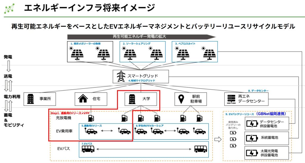 「GBNet福岡」では、EVバッテリーの国内資源循環モデル「福岡モデル」の構築を目指し、サステナ(中古)EVリース事業やEVバッテリーのリユース・リサイクルの実証に取り組んでおり、これはレアメタル資源の確保・経済安全保障・CO2削減にも貢献する全国に先駆けた先進的なプロジェクトです。
